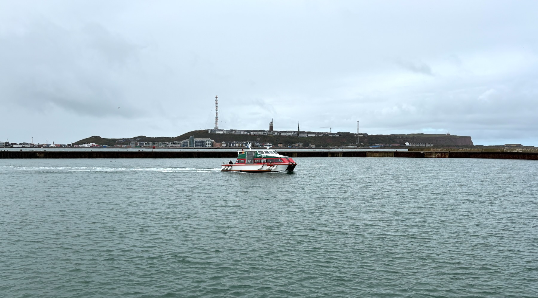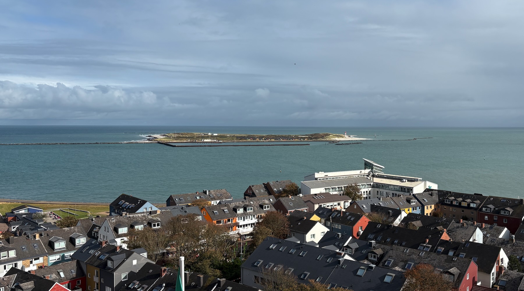 Meine deutsche Lieblingsinsel ist zwar eigentlich Amrum aber dort war ich schon länger nicht mehr. Nun sollte es endlich mal auf die einzige deutsche Hochseeinsel gehen, Helgoland! Ahoi und nix SUP sondern Anfahrt mit dem 1973 erbauten Seebäderschiff "Funny Girl". Die Alternative wäre für uns der Katamaran gewesen, beide fahren ab Büsum. Der Oldie braucht zweieinhalb Std. der Flitzer eineinhalb Std.. Trotz meiner begrenzten Seetüchtigkeit haben wir uns für ersteres entschieden. Da Anfang Oktober die Hauptsaison längst vorbei ist, war es auch überhaupt nicht voll an Bord. Auf das üppige kulinarische Angebot habe ich aber sicherheitshalber verzichtet. Sanftes Stampfen und Rollen draussen auf der Nordsee ist nicht jedermanns Sache. Ging aber dann erstaunlich doch gut. Die Abfahrt war um 9:30 in Büsum und um 13:00 waren wir schon in unserem Hotel am Falm im Oberland. Der Ausblick aus dem Hotelzimmer war die Anreise alleine schon wert.